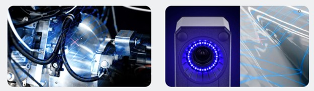 Szybkie skanowanie: kilka niebieskich krzyży laserowych generuje do 2 mln punktów na sekundę.